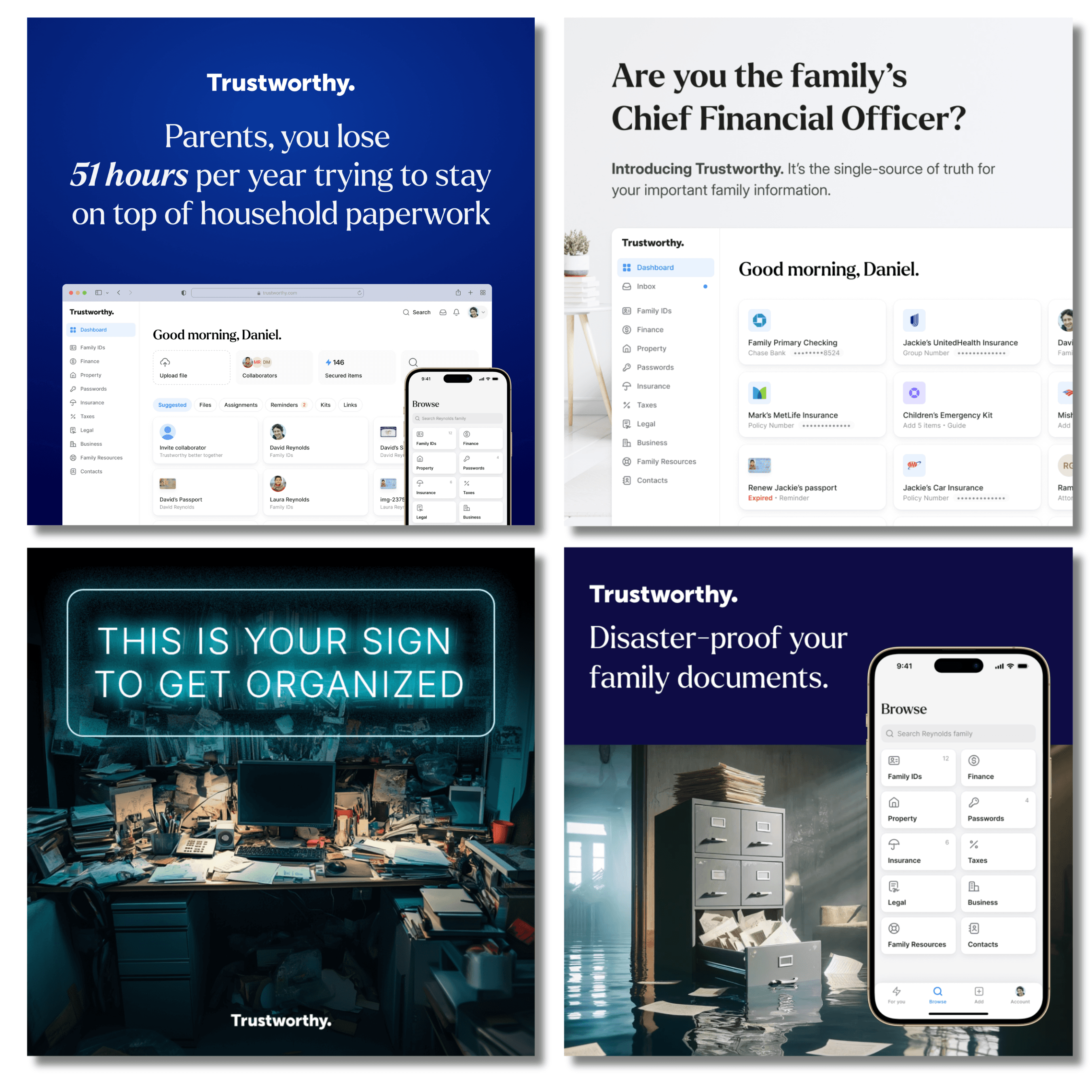Trustworthy offers a freemium software product for organizing vital family information. We've helped them lower their cost per sign-up by 76% and their cost per subscription by 61%.